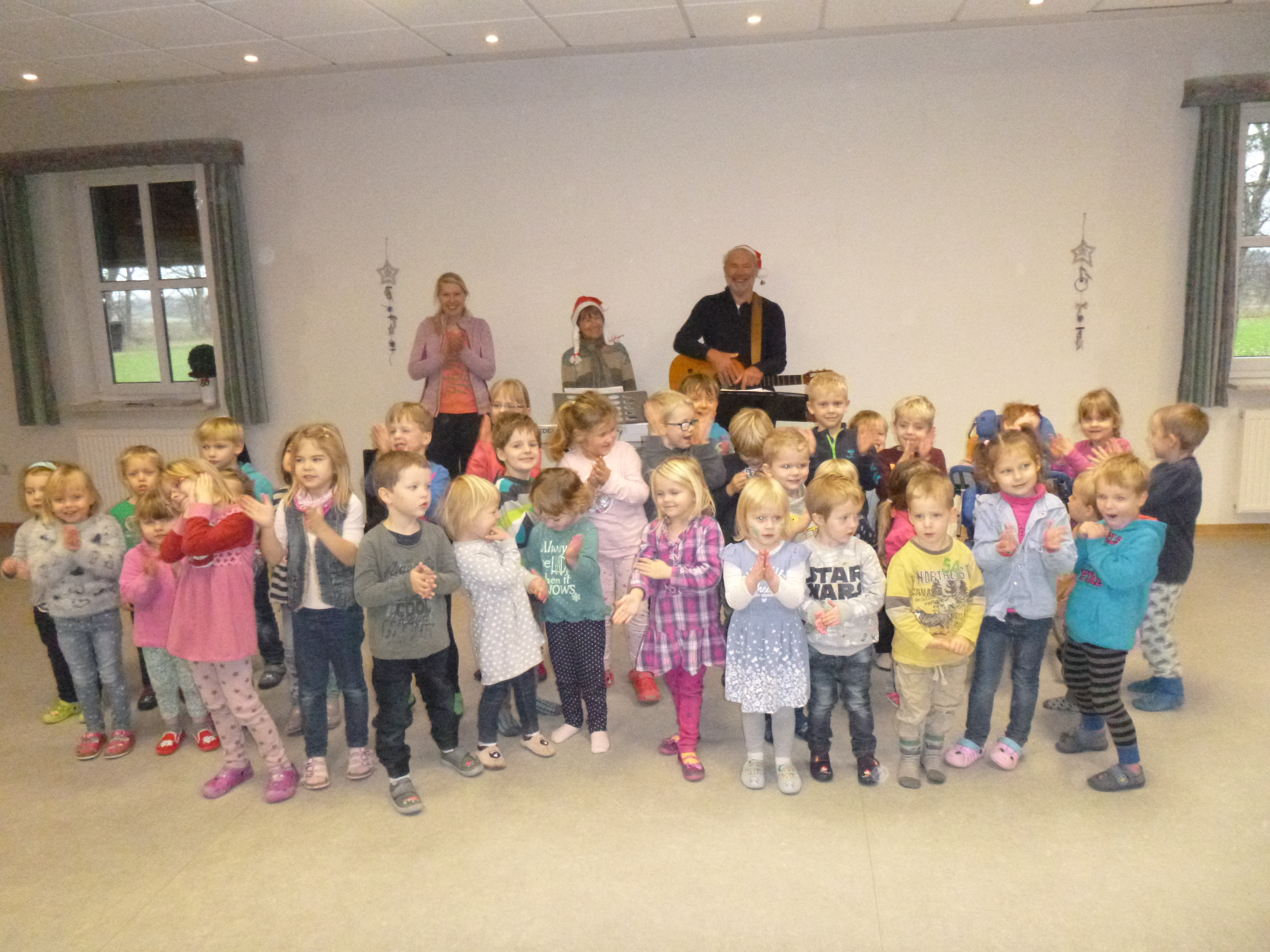 AdventssingenAm Nikolaustag bekam der Kindergarten Besuch von dem Duo Klaus-Peter Jendrian und Elvira Bielenberg aus Helse. Begleitet von Gitarre, Keybord und Akkordeon spielten sie fröhliche und besinnliche Lieder zum Mitsingen. Die Zeit verging wie im Flug. Dankeschön sagen alle Kinder und das Team vom Kinnergoorn Küselwind. |