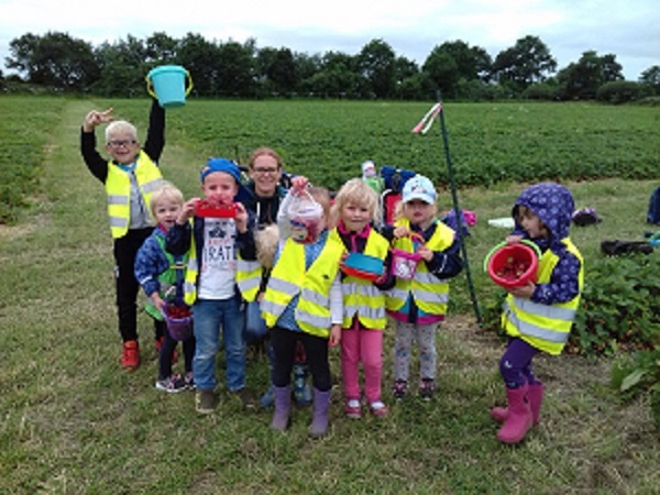 Erdbeeren pflückenDie Wichtelgruppe des Kinnergoorn Küselwind folgte einer Einladung zum Erdbeeren pflücken. Gut gelaunt wurde gepflückt und genascht. Am Ende waren die mitgebrachten Eimer der Kinder voller Erdbeeren. Mit einem fröhlichen Lied auf den Lippen spazierten alle wieder zurück in den Kindergarten. Vielen Dank dafür. |