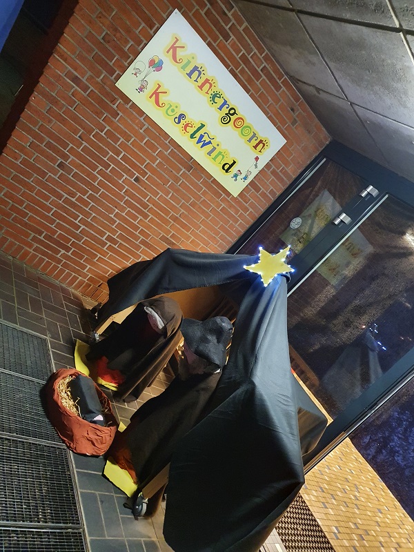 24 lüttje Döörn 2021Das 15. Türchen des lebendigen Adventskalenders wurde in diesem Jahr vom Kinnergoorn Küselwind geöffnet. Es kam der von Stall von Bethlehem mit Maria und Josef und dem Jesuskind zum Vorschein. Alle Anwesenden bestaunten das Arrangement und freuten sich sehr darüber. Die besinnliche Stunde mit Liedern und Gedichten klang bei heißen Getränken und Honigkuchen stimmungsvoll aus. |