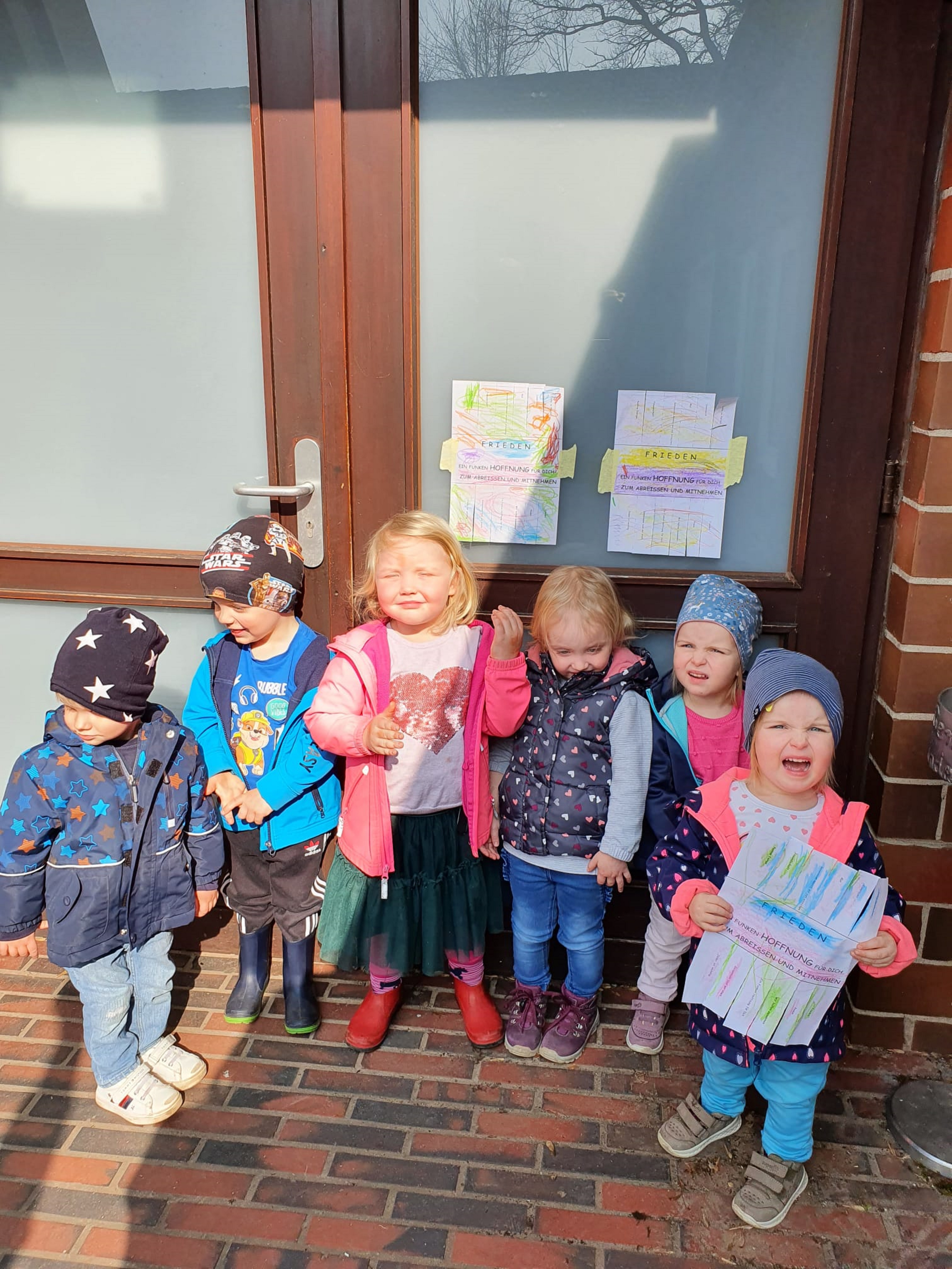 Ein Funken Hoffnung für Dich!Ein Funken Hoffnung für Dich zum Abreißen und Mitnehmen war das Motto unserer kleinen Aktion zum Thema Frieden. Jede Gruppe hatte im März einige Flyer vorbereitet, die sie anschließend im Dorf aushängte. Jeder Lesende konnte einfach mal innehalten und sich einen kleinen Abschnitt mit unterschiedlichen Aufschriften mitnehmen. Sogar unsere Jüngsten waren mit Begeisterung dabei. Wir wünschen allen Menschen: Liebe im Herzen, Zuversicht, Mut, positive Energie und Frieden. Wir halten zusammen. Gemeinsam sind wir stark und können viel erreichen. |