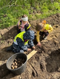 Kartoffelpflanzaktion 2.5.23Die ältesten Kinder aus dem Kinnergoorn Küselwind wurden von Caren und Moritz Häger eingeladen, direkt auf dem Feld Kartoffeln zu pflanzen. Schon im Vorfeld gab es für die KiTa Kartoffeln zum Vorkeimen. Gut gestärkt machten sich alle nach dem Frühstück bei bestem Wetter auf den ins Brandmoor zu Familie Häger. Von dort ging es weiter zum Feld, das bereits mit Furchen für die vorgekeimten Kartoffeln vorbereitet war. Nach einer kurzen Einführung durch Caren Häger durften die Kinder in Kleingruppen pflanzen. Sie mussten dabei Dinge beachten, wie z.B. den richtigen Abstand der Keimlinge einhalten und wie „gehäufelt“ wird. Natürlich bekommen fleißige „Arbeiter“ zwischendurch auch einmal Hunger und konnten sich bei Keksen und Getränken stärken. Alle hatten viel Spaß bei der Aktion und konnten unter Beweis stellen, was sie alles gelernt hatten. Vielen Dank an Familie Häger für das tolle Naturerlebnis. |